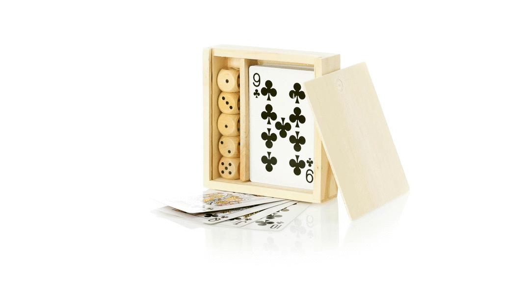 Jogo Cartas com Caixa Madeira - #6418 40,00 € Desconto de %. Partilhar O produto encontra-se sem stock. Jogo de cartas apresentado em caixa de madeira individual com tampa. 2 Jogos. Área máxima de impressão : 50 x 50 mm | 1 Posição/face Impressão (FULLCOLOR) Gravação Laser max. 1 cor Tamanho: 10.5 x 2.8 x 9.7 cm | 122 gr. Produto limitado ao Stock existente. Tags Jogos