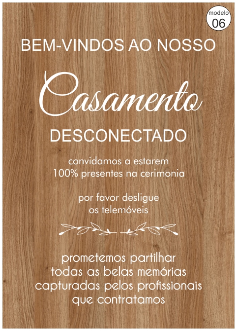 • Placa em madeira com texto branco sobre casamento desconectado