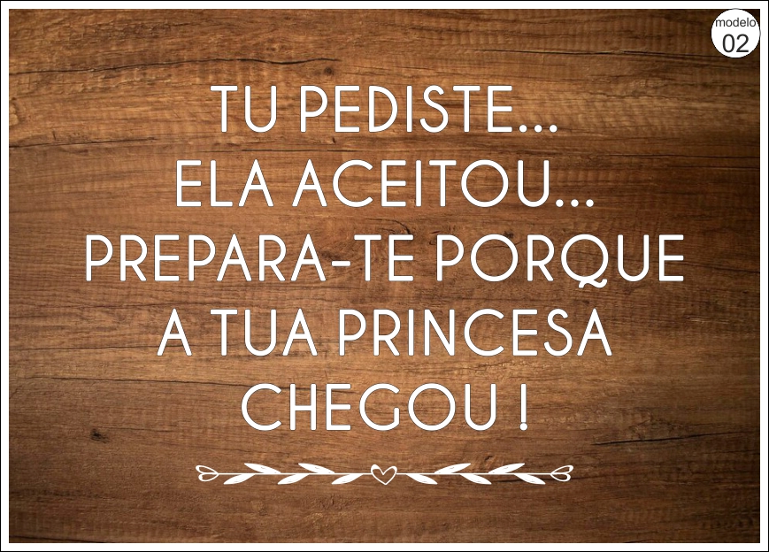 • Texto branco sobre fundo de madeira dizendo 'Pai a mãe está linda e vem aí!' com selo 'modelo 07'