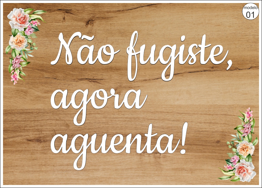 • Quadro decorativo em madeira com texto branco e flores nas bordas